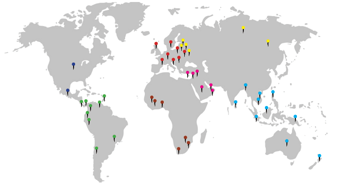 | Africa | South Africa, Nigeria, Ghana, Kenya, Zambia, Burkina Faso, etc... |